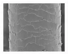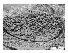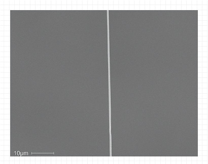 ナノフロント®織布断面の電子顕微鏡写真(写真提供:帝人フロンティア㈱)10μm=0.01ミリ