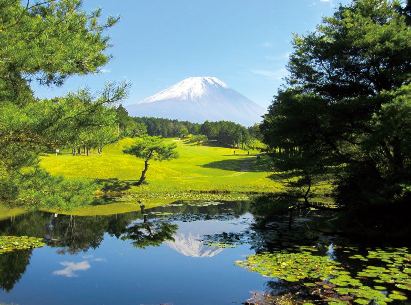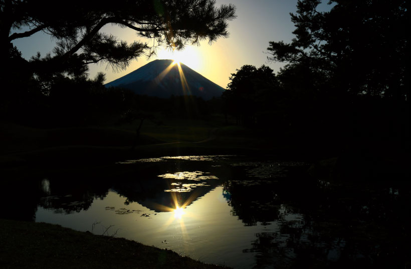 池に映る逆さ富士やダイヤモンド富士でプレーヤーをおもてなし。