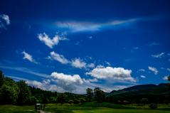 ↓ そして極めつけがこちら。さっきも出てきた彩雲(さいうん)。昔からこれが現れると吉兆とされてるけど、実際はありふれた気象現象なんだって。そのわりにそんなに見たことないけどなー。ただ、この雲は水平に横長でちょっと上に反りかえってるので、たぶん彩雲というよりは環水平アーク(かんすいへいあーく)と呼ばれる大気光学現象だと思われます。パソコンは変換してくれません、環水平アーク。環水平弧なら「かんすいへいこ」で語呂がいいのに。なぜアークだけカタカナ。またまた話が戻りそうです。おあとがよろしいようで。