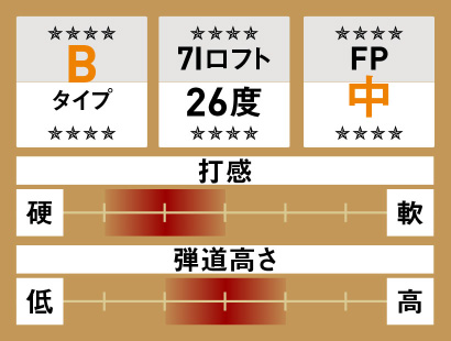 ●ヘッド素材/フェース&ネック:軟鉄、本体:タングステンニッケル