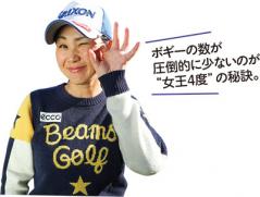 昨年、参戦9年目にして4度目の賞金女王に輝いたアンちゃんですから、どれも安定してうまいのは当然ですが、私の中でもっとも彼女を表すのにぴったりな言葉は「ピンチのときにボギーを打たない選手」ということでしょうか。たとえグリーンを外しても上手く寄せてくるし、ピンチの場面でも2、3メートルのパットをしぶとく入れてくる。だから、圧倒的に「ボギーの数」が少ないですよね。安定感抜群のショートゲームは見物ですよ!