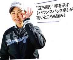 実はメジャーでツアー初優勝を飾った「サロンパスレディス」の3試合前、「バンテリンレディス」で印象的な出来事があったんです。初日9オーバーの最下位から、2日目6アンダーのビッグスコアでギリギリ予選通過。この爆発力って、やっぱりプロとしては大きな魅力なんですよね。加えて彼女は「バウンスバック率」が1位で、これは“立ち直り”を意味をする数字。ボギーを打ってもすぐにバーディが取れるというのは、メンタル的に楽なるうえ、大崩れすることが少ないということ。これは強みですよね。