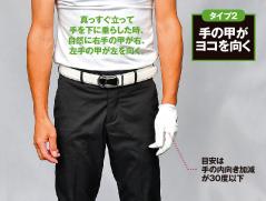 ※手の甲の角度が30~40度の人は、タイプ1、2の両方を試してスイングしやすい方をセレクトすればOK。ちなみにサイエンス・フィットで計測したゴルファー全体では6:4でタイプ1がやや多め。