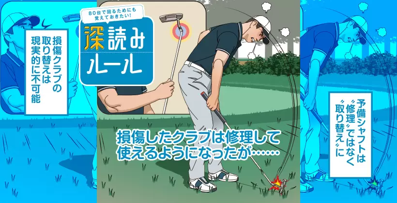 取り替えを禁止する新規則4・1b(3)の例外として、プレーヤー(そのキャディも含む)が損傷の原因となっていない場合、つまり今回のように他人の運転するカートが接触してバッグ内のクラブを折った場合などは、取り替えが認められるのだ。