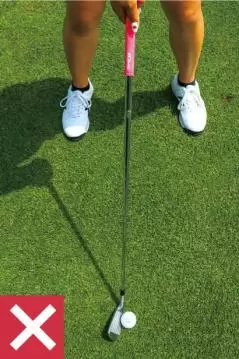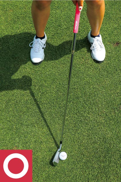 正しいハンドファーストは、右手首を支点にして甲側に少し曲げるだけ。正しく構えることによって、スイングに余計な動きを与えることのない、ダウンブローのインパクトを打てるようにしましょう。