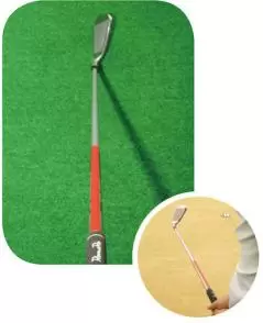 手の近くに目印となるテープがあるので手や腕とフェース面を同調させやすい!