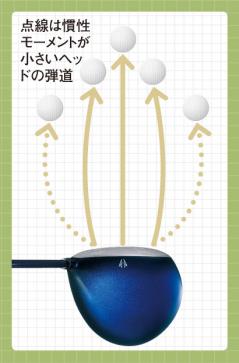 慣性モーメントが大きいとミスヒット時のヘッドの回転が小さくなり、曲がり幅が減る。