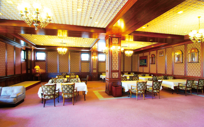 歴史に彩られた重厚な様々な空間で食事を楽しめる。