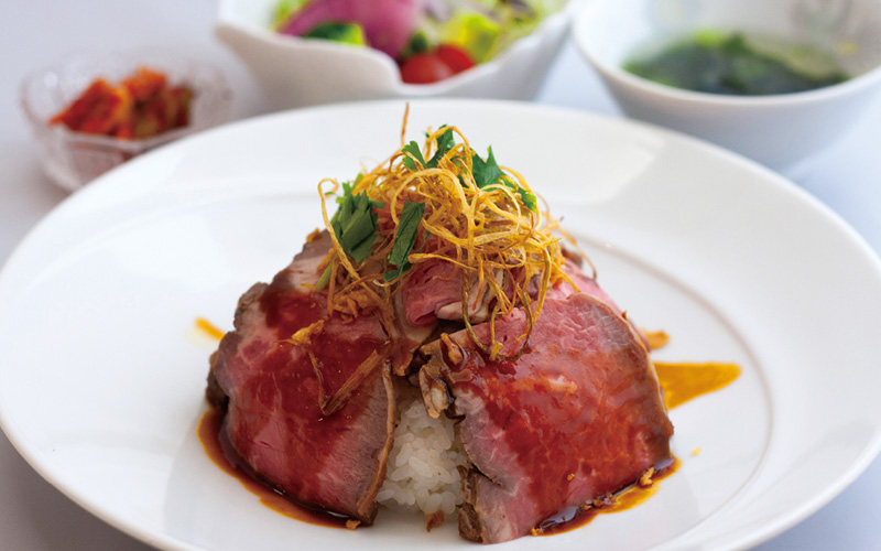 「自家製ローストビーフ丼」噛むほどに肉の旨味が凝縮された自家製ローストビーフ。
