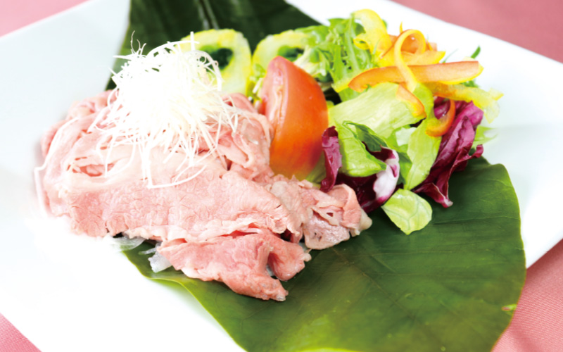 「中華膳」にんにくの香味が効いた豚しゃぶで、ビールのおつまみにも最高。