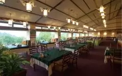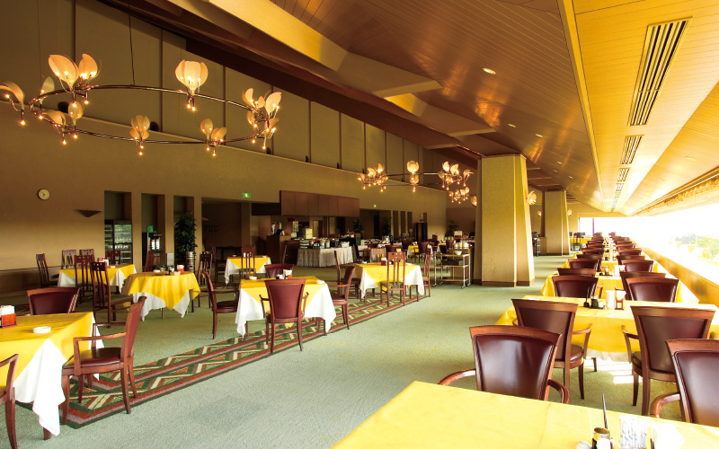 食事とコースの景色も楽しめる、明るく開放的なレストラン。