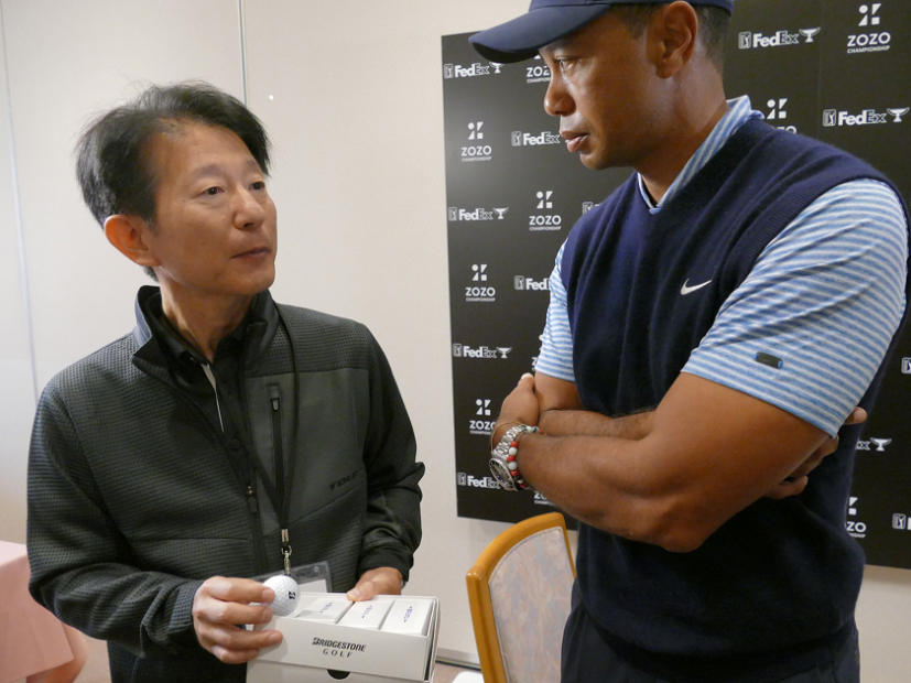 新しい「TOUR B XS」と思われるニューボールのテストが佳境を迎えており、タイガー・ウッズもプロトタイプを複数回テスト済みとの情報を聞きつけ、ZOZO CHAMPIONSHIPでタイガー・ウッズにひと言感想をもらえる機会を窺っていたのだが……、なかなか近づくことができず、意気消沈していたところに朗報が入った。ブリヂストンスポーツの技術開発部部長の甲斐さんが、タイガー本人からコメントをもらってきてくれたのだ。はたして、ニューボールに対するタイガーの評価はいかに?