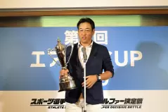その結果、最終18番をバーディでまとめた西崎幸広選手が、栄えある優勝を手にしました。同スコアで最終がパーだった北島康介選手は惜しくも準優勝。