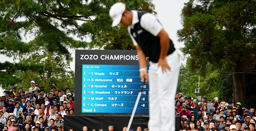 第3ラウンドでは、タイガー・ウッズが前半4バーディ1ボギーの31(パー34)でラウンドし、あわや独走状態かと思いきや、ここで首位に食らいついてきたのが我らが日本のエース、松山英樹(LEXUS)だ。