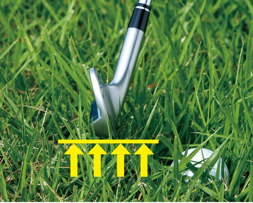 プロツアーでは手強いラフも難敵です。やさしいアイアンほどソールが広く、ヘッドサイズも大きいので、ラフに沈んだボールに当たる前に芝の抵抗を受け、ヘッドが芝の中に入って行きにくくなってしまいます。ソールが狭くコンパクトなサイズのマッスルバックアイアンなら、ラフに沈んだボールでも打ちやすいのです。