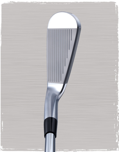 伝統的に高く評価されているミズノの顔について、マイスターの伊藤は「構えやすいアイアンはネックからフェースのつながりが美しいこと。そしてフェースの下側を見ると、良い顔かどうかがわかります。構えたときにフェースの下側にボンヤリと“四角いゾーン”が見えるとスクエアに構えやすく感じます」と語る。写真は『ミズノプロ120』。