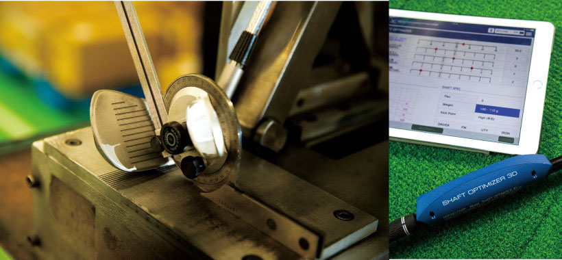 カスタム専用販売の『ミズノプロ』ではアイアン全番手のロフト角、ライ角などを1本1本確認してから、クラブを組み立てている。フィッティングで使われる『シャフトオプティマイザー3D』ではわずか3球で、ヘッドスピードからトゥダウンの角度、フェーストゥパスの角度など9つの要素を計測してスイングタイプを分析できる。