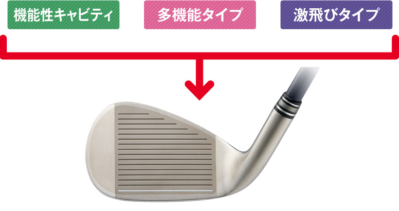 本体は軟鉄が主流。ポケットキャビティや中空構造と反発力の高い素材をフェースに使用しているタイプ。
