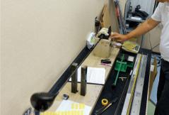 UST マミヤでは、まずはじめに、持参したマイクラブの振動数、重量、バランス、長さを計測する。同時に問診表に必要事項を記入。