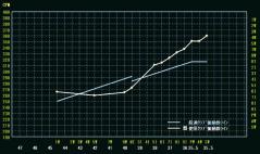 マイクラブの計測データと問診表のデータを診断システムに入力。画面はマイクラブのセット内の振動数フローがグラフ化されている。