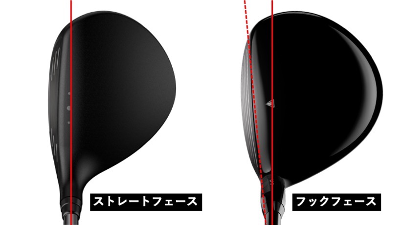「フックフェース」とは、シャフトを真っ直ぐにして構えた際に“フェース(リーディングエッジ)が左を向いている”ことを言います。「フックフェース」のフェアウェイウッドは、総じてボールがつかまりやすく設計されています。
