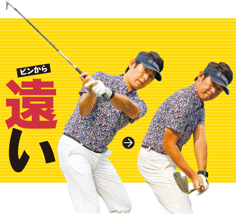 ピンが遠い時はクラブを寝かせる
