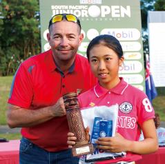 日本は昨年大会から、ジュニアの団体「JJGA」が主催する選抜試合に勝ち抜いた男女それぞれ2名、合計4名が遠征。さらに、今年はオーストラリアのゴルフスクールに留学中の日本人生徒3名も参加し、7名の日本人が挑戦。21歳以下、17歳以下、14歳以下の男女と6つのカテゴリーに分けられ、3日間のトータルスコアで競った。その中で、松田雫さんは通算228でラウンド。まだ12歳だが年上のライバルをものともせず、14歳以下の女子の部で、2位に9打差をつける圧勝。