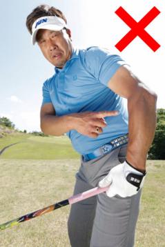 カラダや腕の可動域が狭くなるのでスイングが小さくなる。当然パワーも大きくなりませんからね。