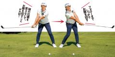 と解説してくれた。ティアップしないで打つクラブで最も長いフェアウェイウッドは、ついつい手でクラブを上げたくなるが、まずはお腹を回すことで上下に外れるミスがなくなるのだ。