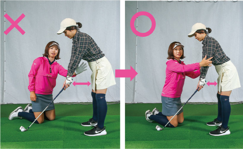 腕だけでなく、全身のパワーを総動員して、飛距離につなげるために、上体を捻転させることを覚えましょう!