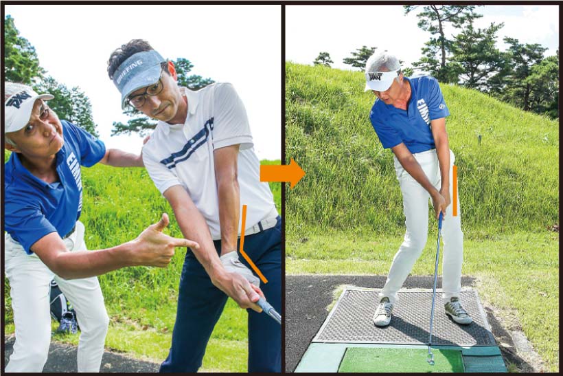 球をつかまえたい、上げたい意識が強すぎ、腰と手が左へと流れてしてしまい、クラブを手首でしゃくり上げる動きが、逆に球がつかまらずにミスも出る原因に!
