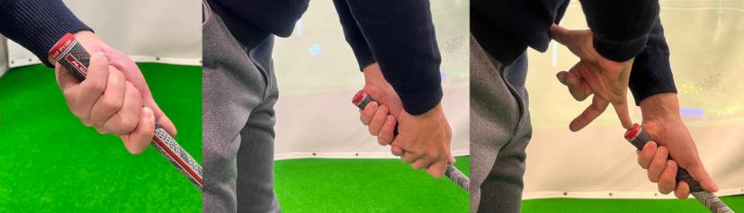 - 親指・人差し指を同じく密着させて人差し指でシャフトつまむようにグリップします。