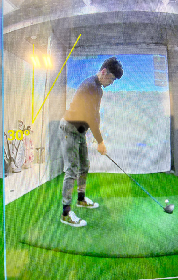 お腹周りに緊張感があり、お尻の位置が高くキープされて、30度前後の適度な前傾で、肩から垂直に線を下したように腕がセットされたアドレスができていると、美しいスイングでナイスショットの予感がします。