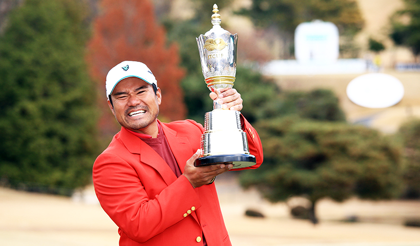 昨年の優勝者は小平智選手。4打差の11位タイでスタートした小平選手のこの日のスコアが64。最終17番のバーディでトップに並び、石川遼選手、黄重坤(ハンジュンゴン)選手とともに、大会史上初となる3人でのプレーオフへ持ち込みました。難関18番ホールでのプレーオフは、1ホール目であっさりと決着。石川選手、黄選手がパーをセーブできず、ボギーとしたのに対し、1.5メートルのパーパットをきっちり沈めた小平選手が、大逆転で栄冠を手にしました。