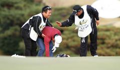 この試合では最終18番ではティショットでグリーンをとらえることができなかったものの、先にホールアウトしていた呉阿順(ゴ・アジュン)選手とは3打差をつけていたので、今回こそは大丈夫と見守っていました。ところが2打目でまさかのシャンク! グリーンをとらえることができません。3打差あるけど、大丈夫かな?と不安になったその瞬間、放った3打目はカップイン! 見事パーをセーブして、初優勝を手にしました。見ているこちらも思わず、目頭が熱くなった感動的なシーンでした。