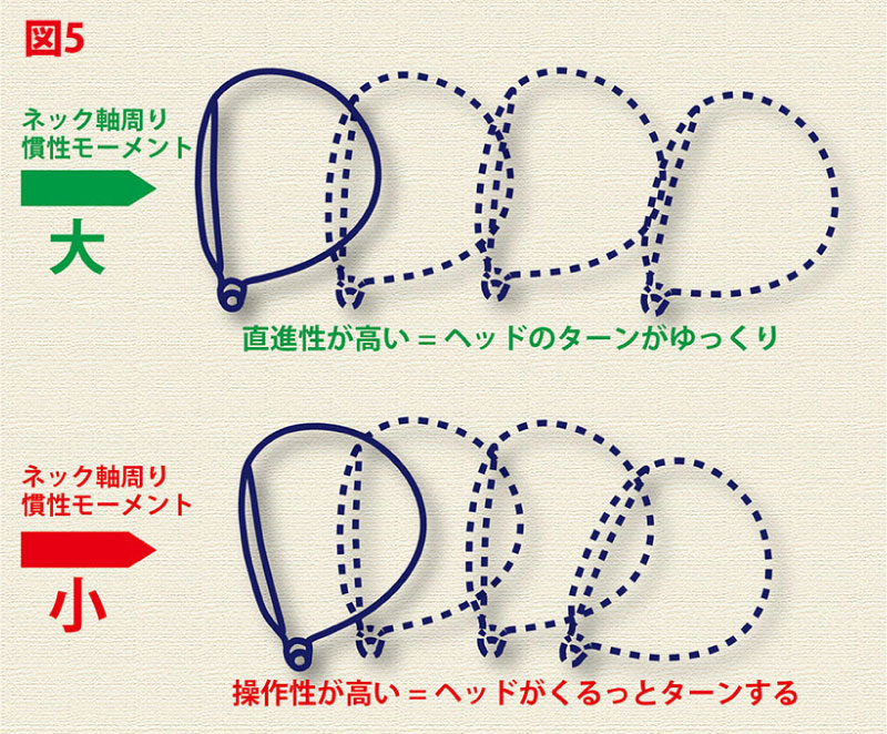 ・ネック軸周り慣性モーメンドの大小でヘッドがターンするスピードが変化する