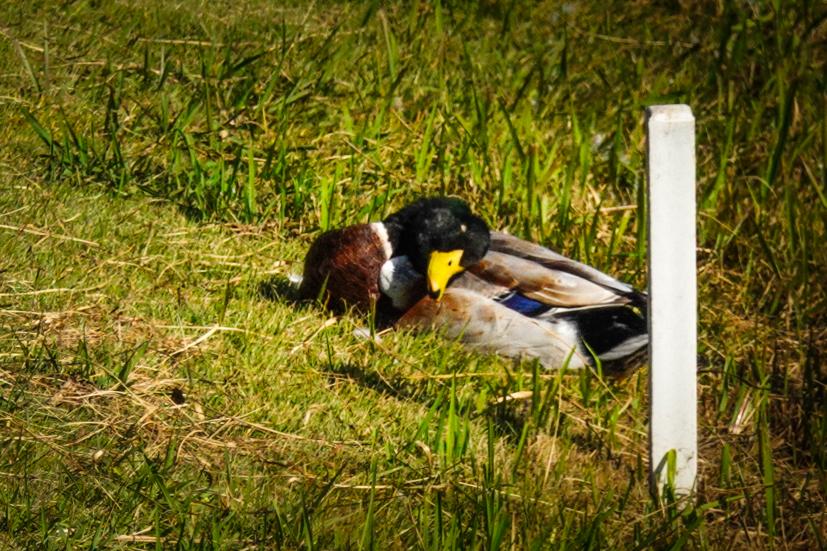 そんでさっきの仲良し2羽組はいつの間にやら18番の池を上がって日なたぼっこしてました。ちょうど18番の丘から見えた。