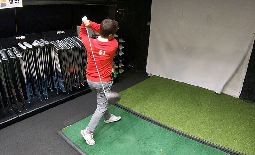 僕はPINGのG400LSテックの8.5度を少しカチャカチャで寝かせて使っているので、スタンダードなヘッドのG410Plusの9度を使ってフィッティングしていきます(この取材の時点ではまだG410LSテックは発表されていなかったので、ヘッドはPlusとSFテックの2種類でした)僕が使っているシャフトが60g台後半の重量なので、それを目安に試打していきます。