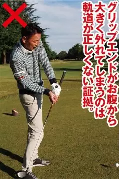 グリップエンドをお腹につける素振りでダウンスイングを改善する