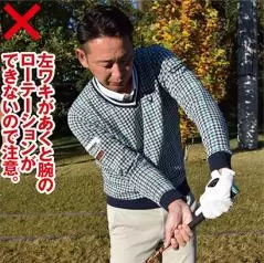 ボールを正しく打つには、インパクトでフェースを閉じてあげることが大事なポイントとなるのはもうおわかりでしょう。そこで必要となるのが腕のローテーションです。