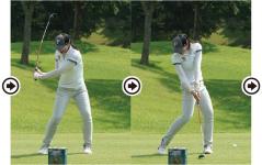左ヒザがアドレスの位置と変わらないトップ。下半身をあまり使わないタイプだが、肩甲骨の柔らかさで上半身を十分に捻転している。