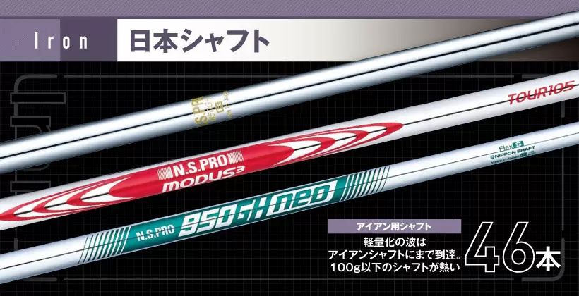 >> 最新&人気アイアン用シャフト46本|軽量化とボーダレスがキーワード