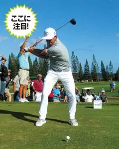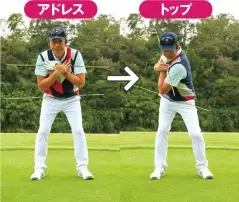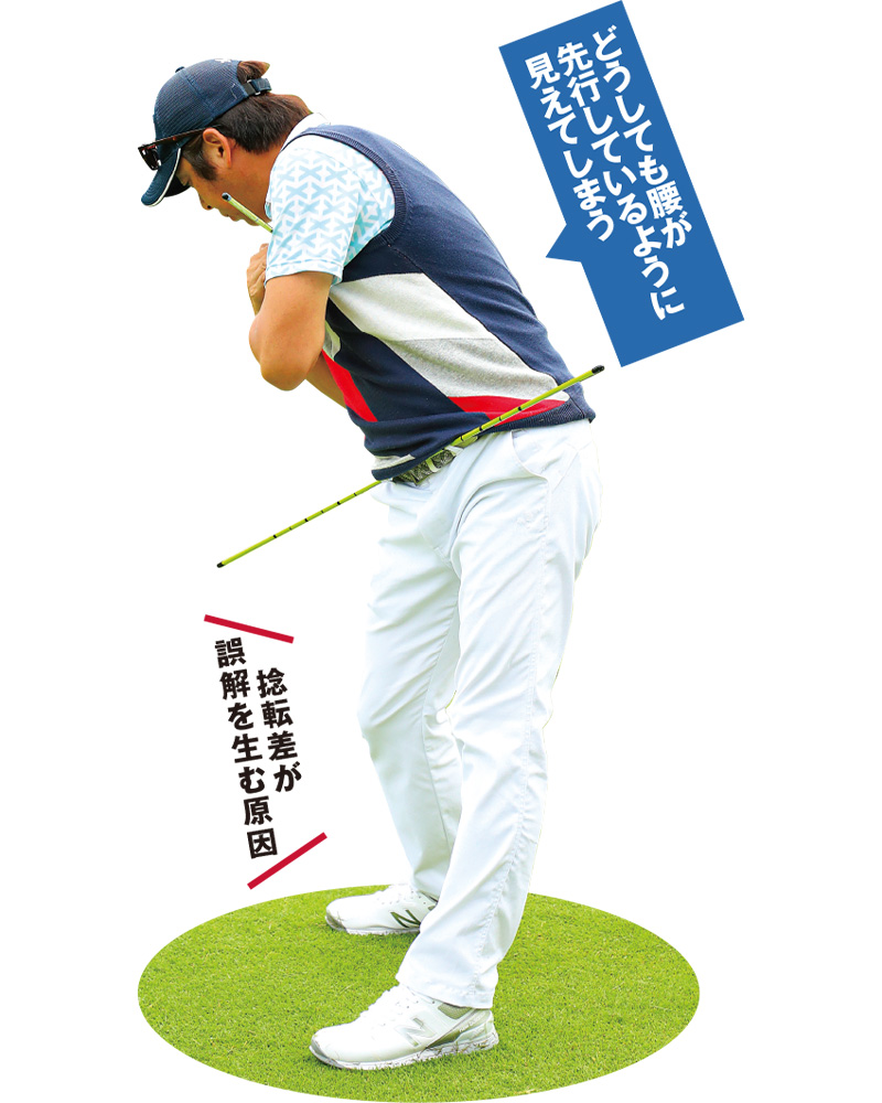 プロのスイングを連続写真などでは、切り返しから腰を先行させて、それに上半身が追随しているように見える。しかし、これはトップで上半身と下半身に捻転差が生まれているため、そう見えてしまう現象。実際には、切り返しのスタートは上半身から行われている。