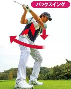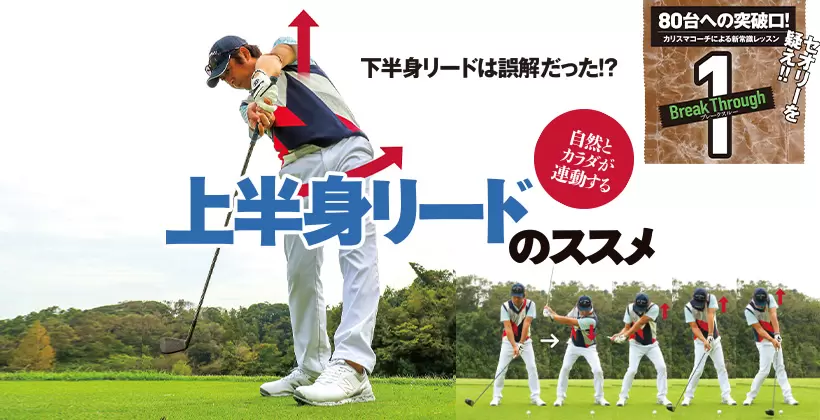 アマチュアの多くが、両腕、そして上半身と下半身が同一方向に動いています。「上半身リード」で、カラダを分離して使う感覚を身につけてください。