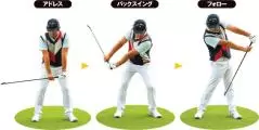左手はいつもと同じ。右手は左手と同じように手の甲が正面を向くようにアドレスする。バックスイングでは左腕を下に動かし、ダウンスイング以降は上に動かすと、腕の動きに連動して、カラダとクラブが動くのが体感できる。