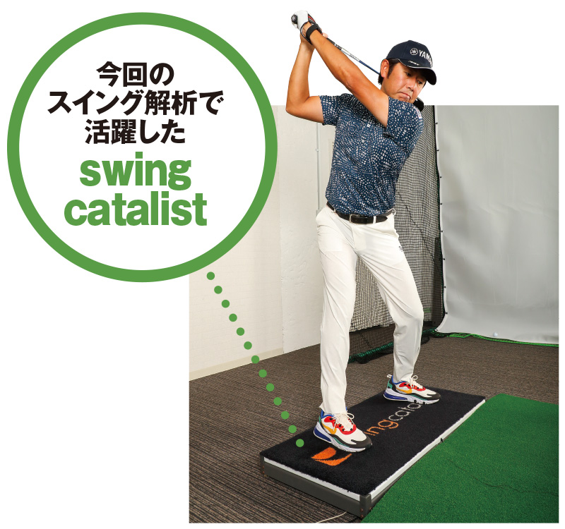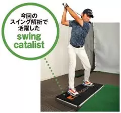 データ分析にはエースゴルフクラブ赤坂に設置されているマット型のスイング解析器、「swing catalyst」を使用。アドレスの体重配分や両足にかかる圧力の変化、スイング中の横方向や縦方法への運動、体の回転量やスピードなどを瞬時に計測するスグレものだ。