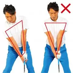 肩と腕でできる形が三角形になるのは、手を重ねてクラブを持った時だけ。