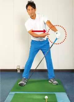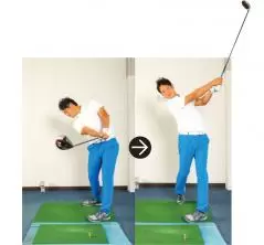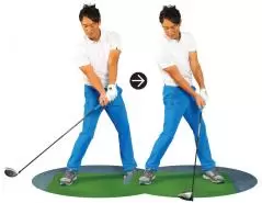 【テークバックのポイント】フォワードプレスでクラブを横にして体を右に回す