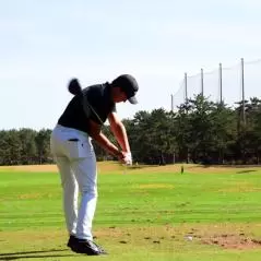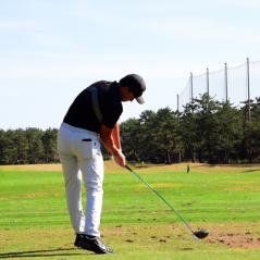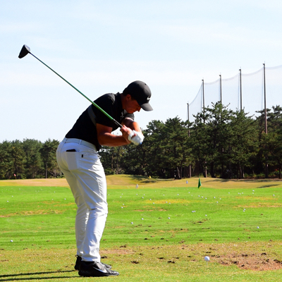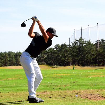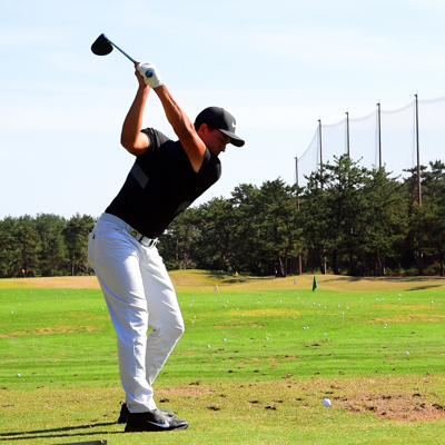 そんなチャンプのスイングで特徴的なのは、下半身の動き。バックスイングでクラブがトップの位置に上がりきる前に、左足が踏み込まれ、下半身が動き始める。この点についてチャンプは、「下半身が先行して動くことで、上半身とのラグ(捻転差)が大きくなります。このラグをしっかり作って、インパクトゾーンでクラブが最大加速するように、一気に解放しています」と教えてくれた。