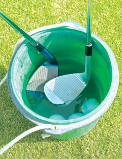 水を張ったバケツにボールとヘッドを浸し、濡れた状態でもテストした。